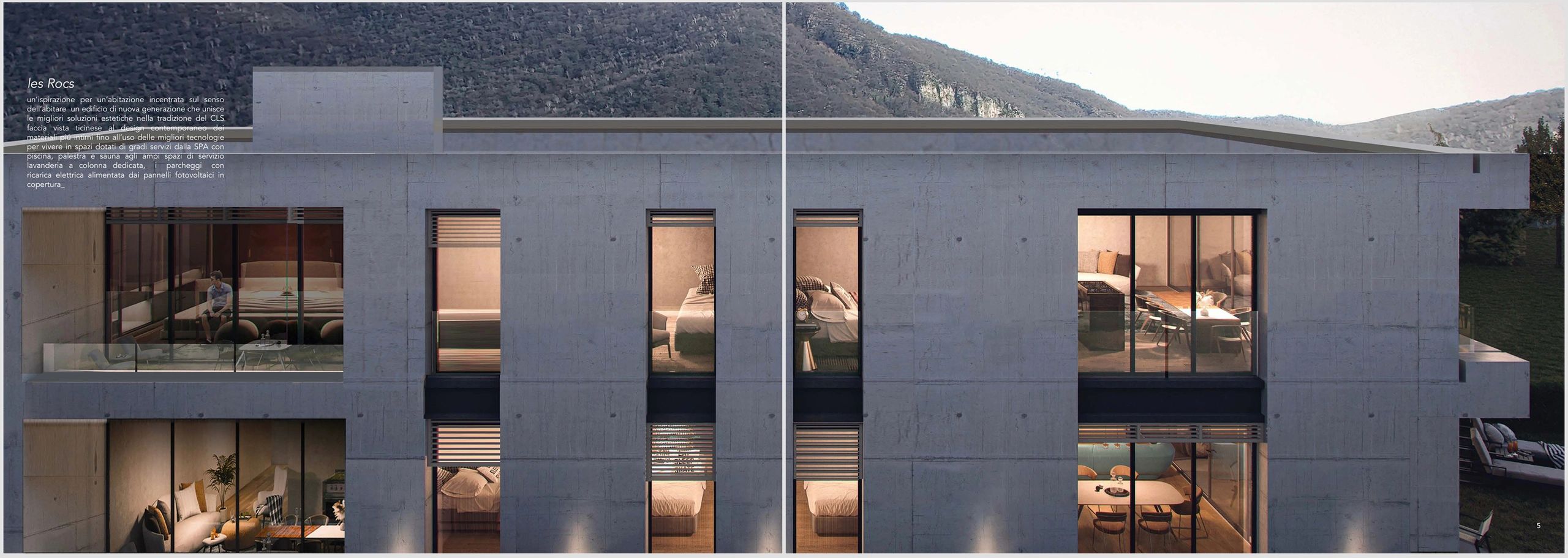 Un nome un'ispirazione… un'abitazione incentrata sul senso dell'abitare un edificio di nuova generazione che unisce le migliori soluzioni estetiche nella tradizione ticinese al design contemporaneo dei materiali più intimi fino all'uso delle migliori tecnologie per vivere in spazi dotati di servizi… dalla SPA con piscina, palestra e sauna agli ampi spazi di servizio lavanderia a colonna dedicata, ai parcheggi con ricarica elettrica alimentata dai pannelli fotovoltaici in copertura.